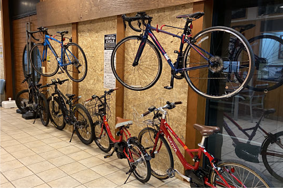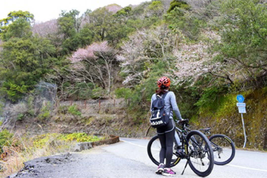 フロント110 を出発し、ガイドと一緒に海コース(道の駅すさみ方面)、山コース(琴の滝)、などを2 時間半ほどサイクリング。